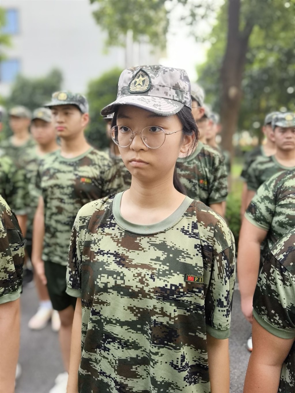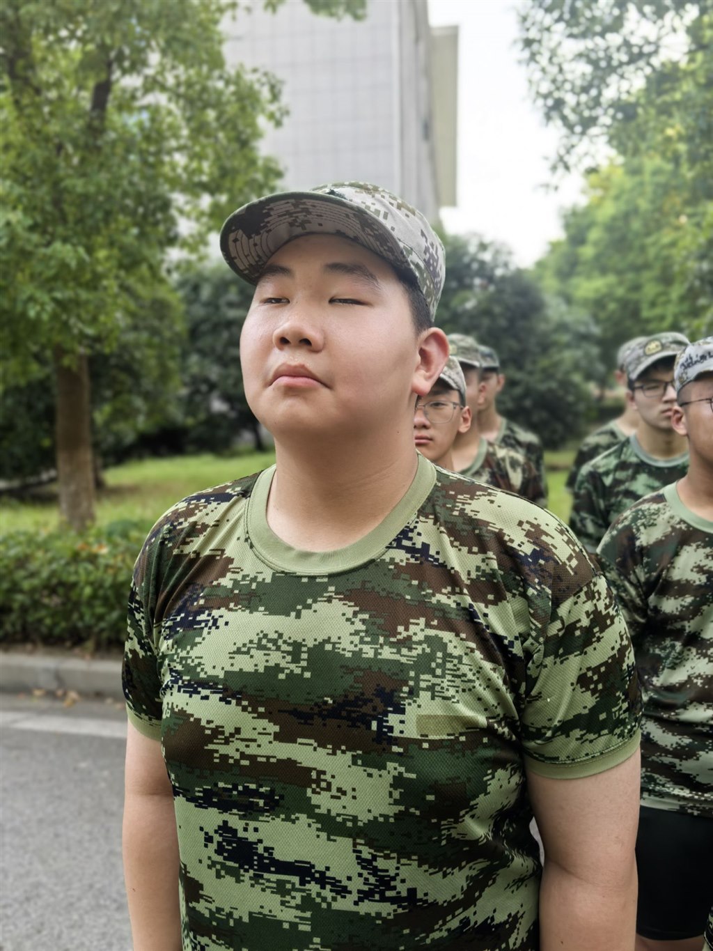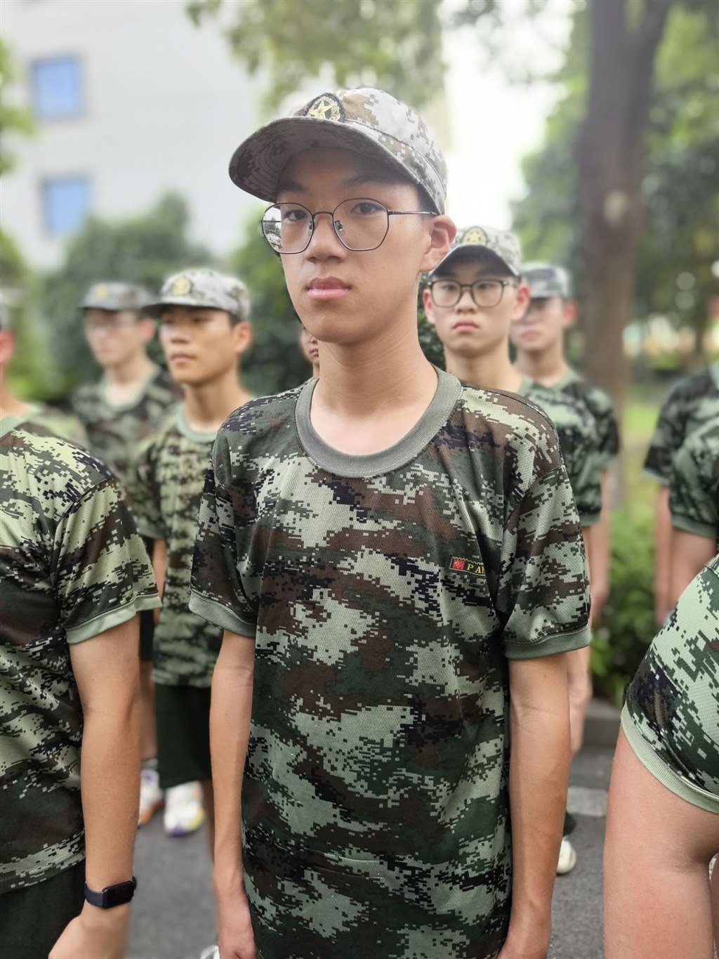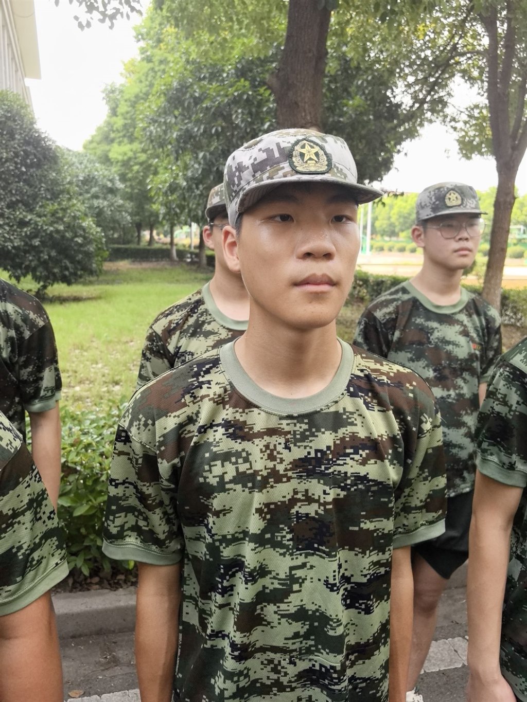 在军训的第一课——站军姿中,高一新生们迎着初升的太阳,笔直站立于操场上。他们挺胸收腹,目光坚定,即便汗水悄然滑落,也毫不动摇。