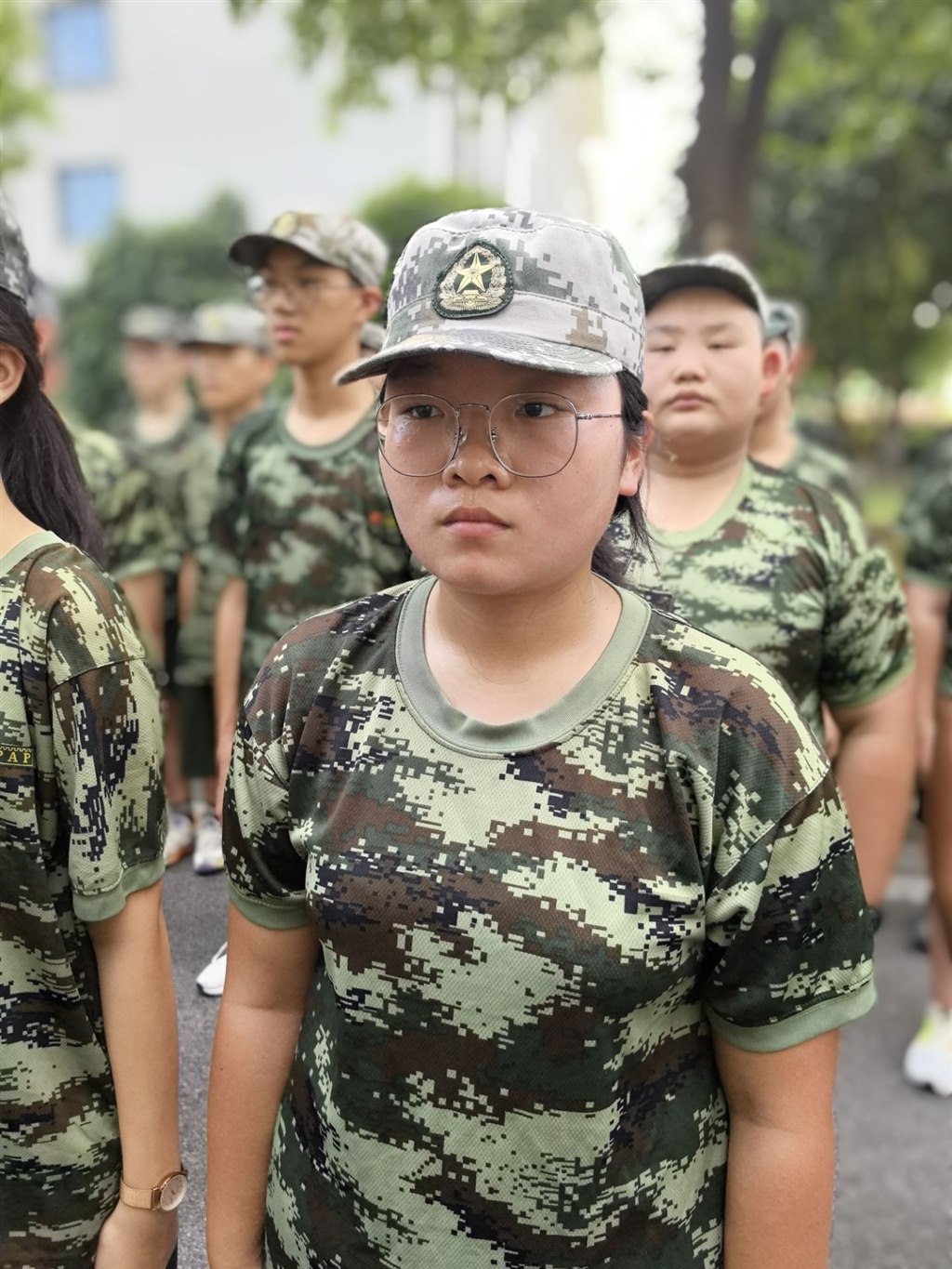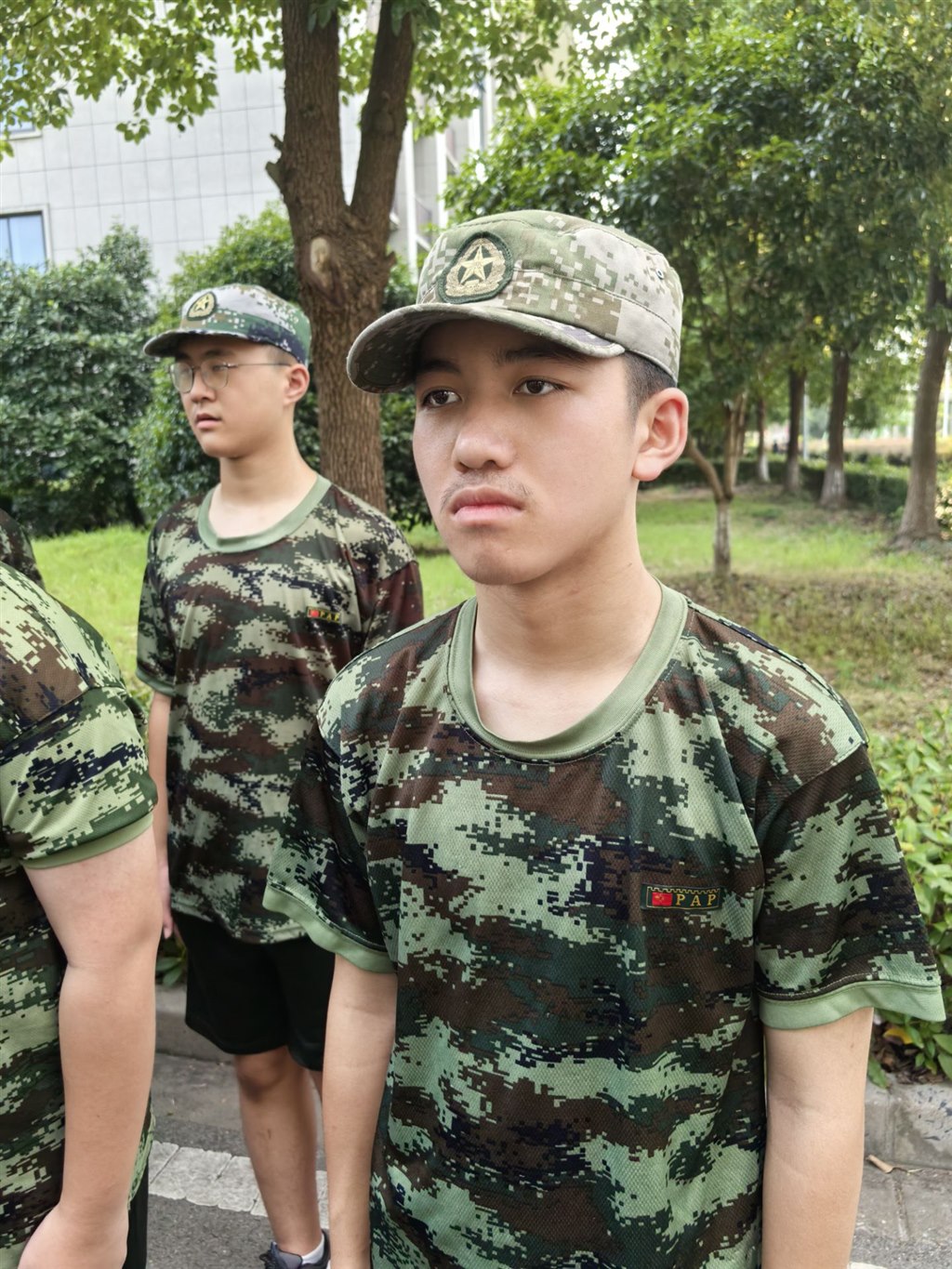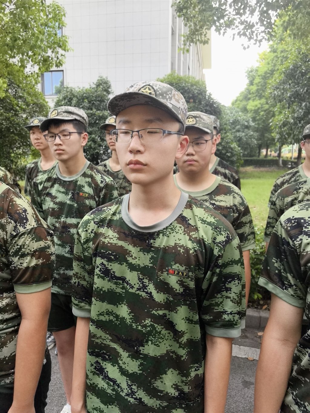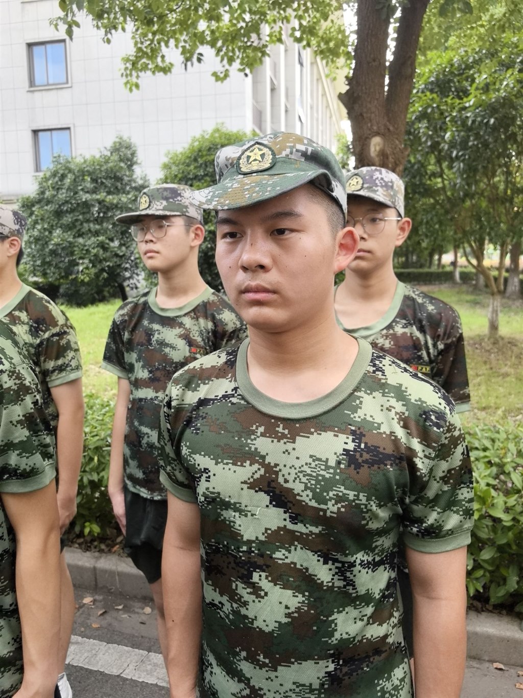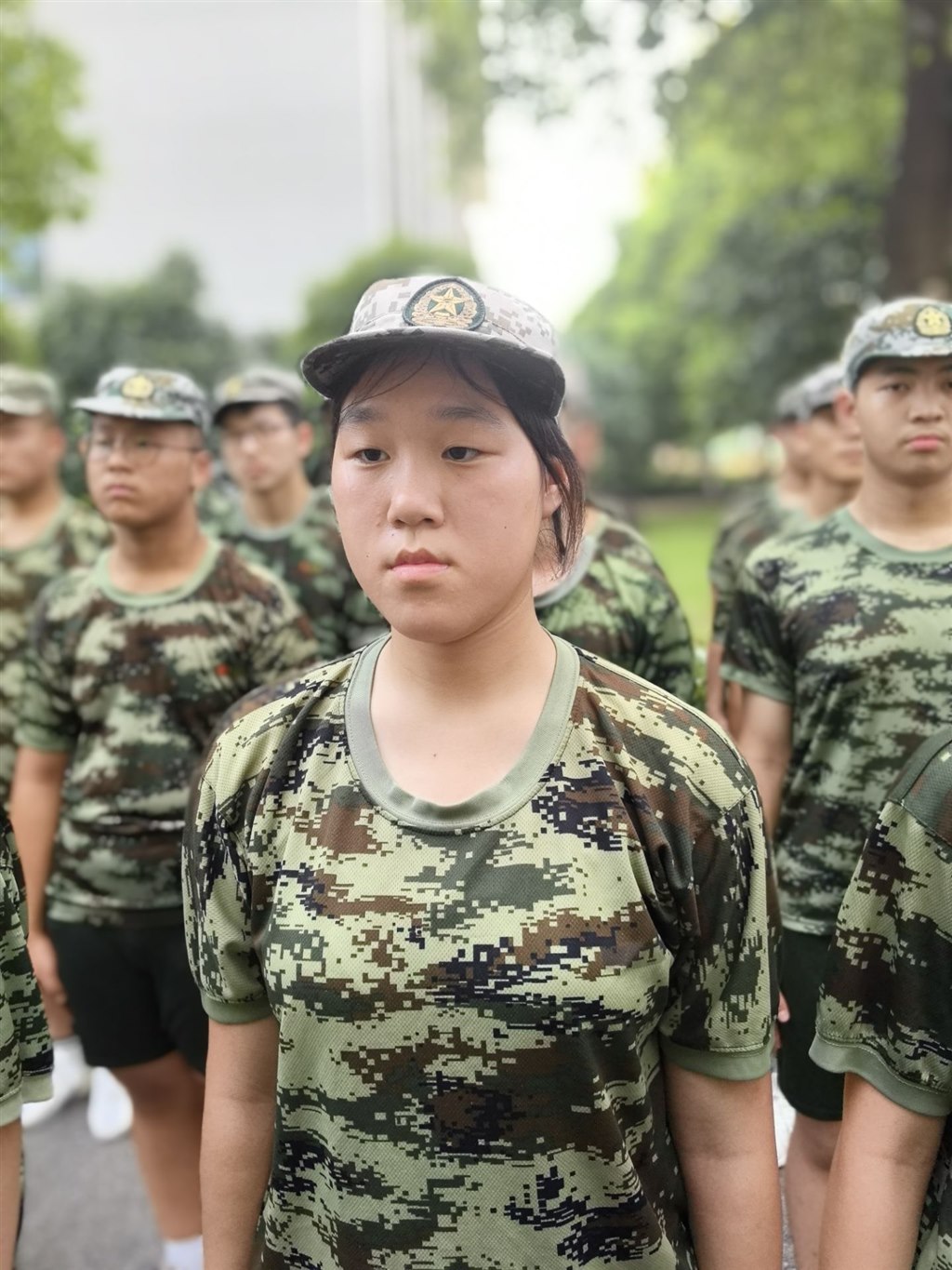 在军训的第一课——站军姿中,高一新生们迎着初升的太阳,笔直站立于操场上。他们挺胸收腹,目光坚定,即便汗水悄然滑落,也毫不动摇。