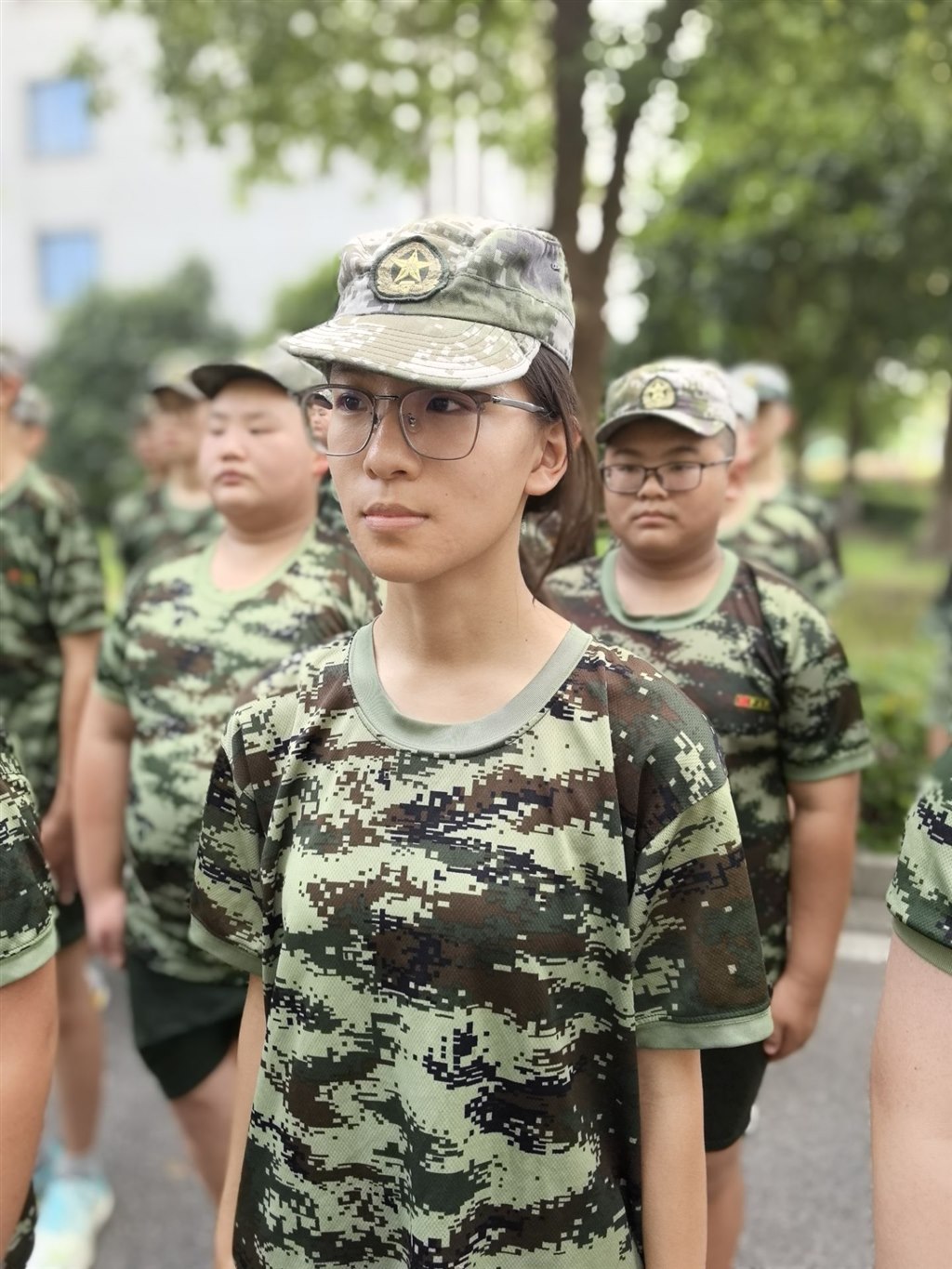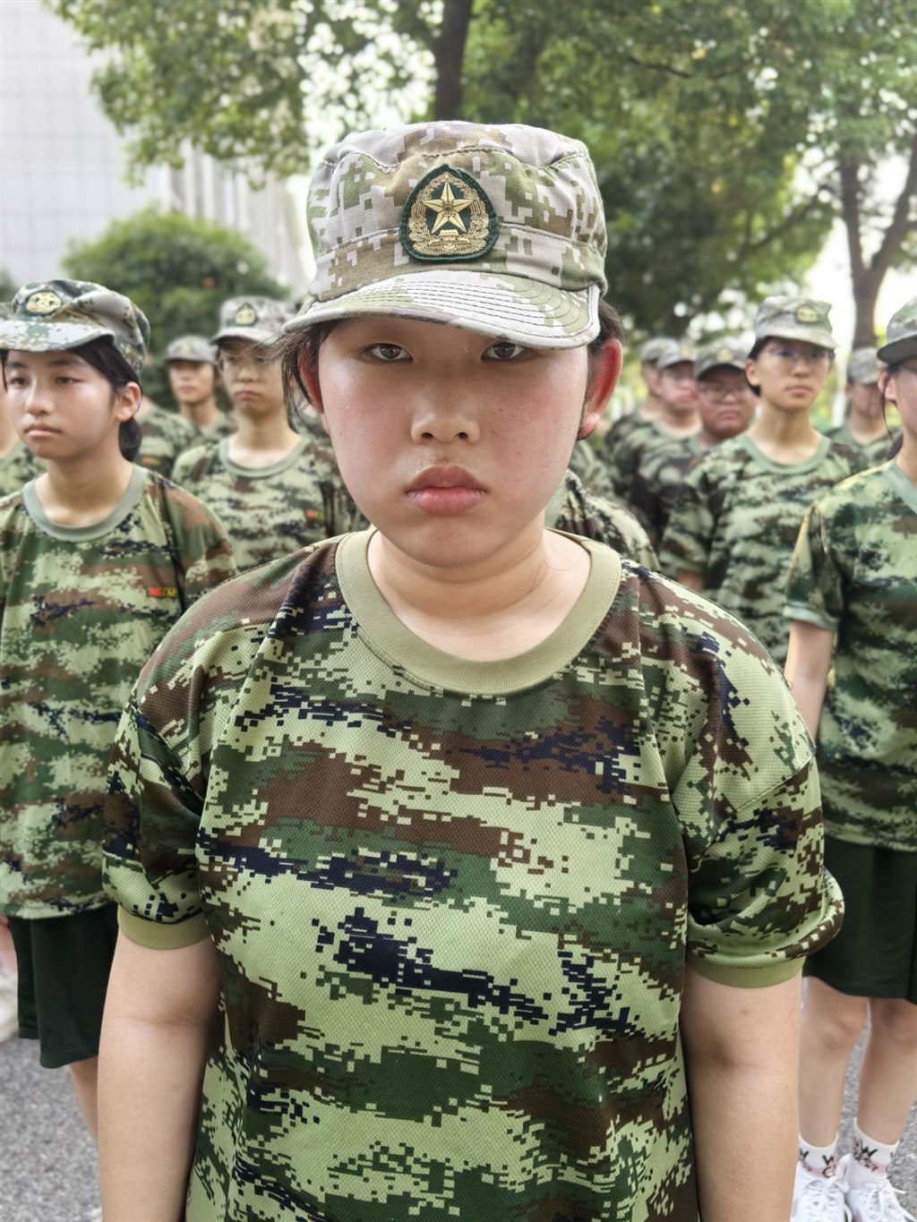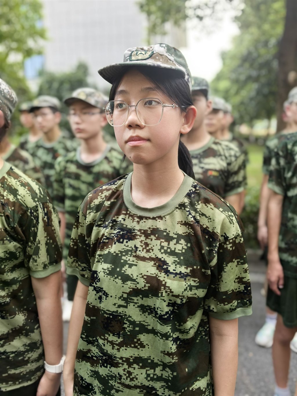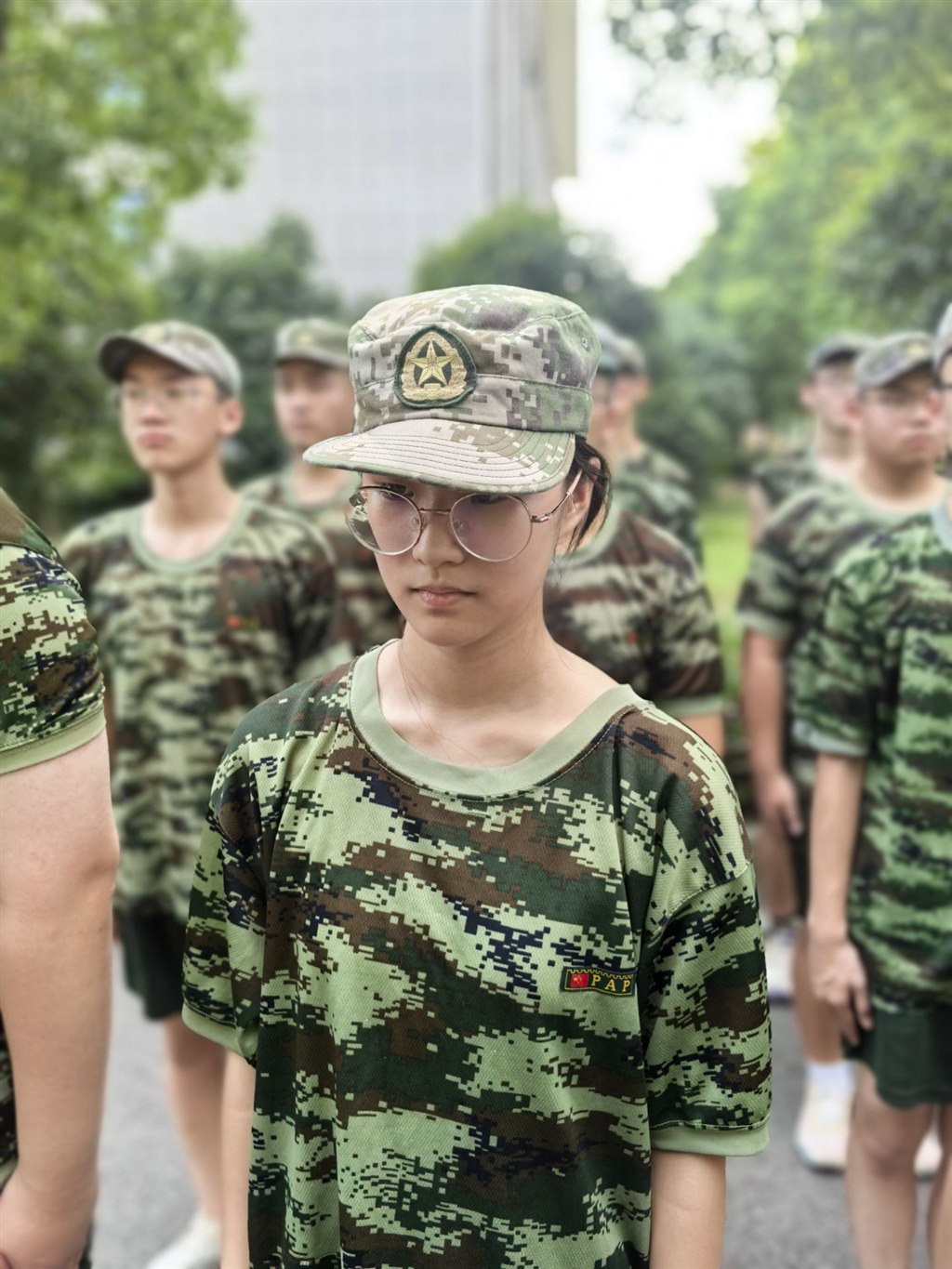 在军训的第一课——站军姿中,高一新生们迎着初升的太阳,笔直站立于操场上。他们挺胸收腹,目光坚定,即便汗水悄然滑落,也毫不动摇。