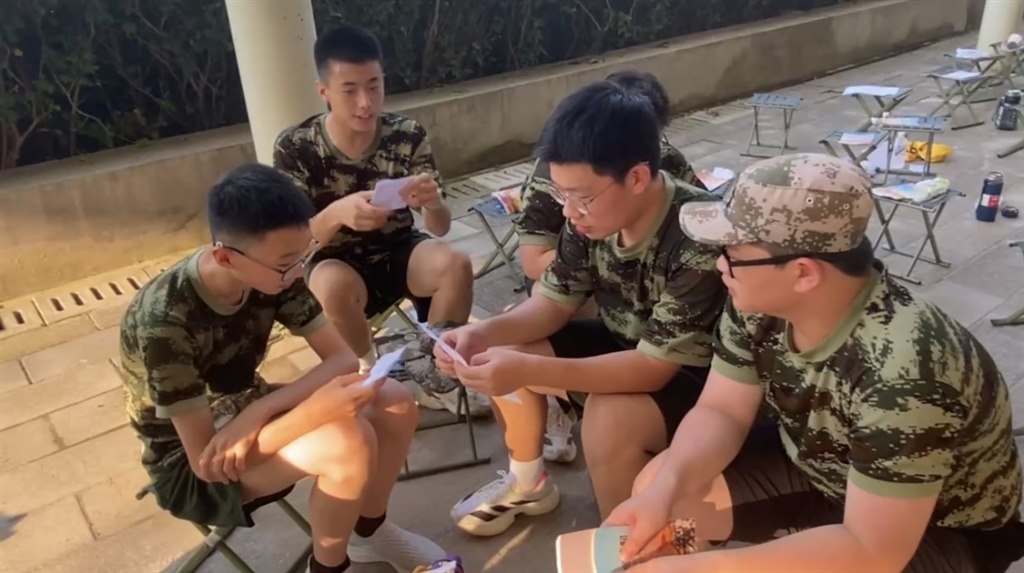 军训的哨声暂歇,烈日仿佛也收起了几分锋芒,在这宝贵的休憩时刻,训练场上散落着青春的另一种姿态。