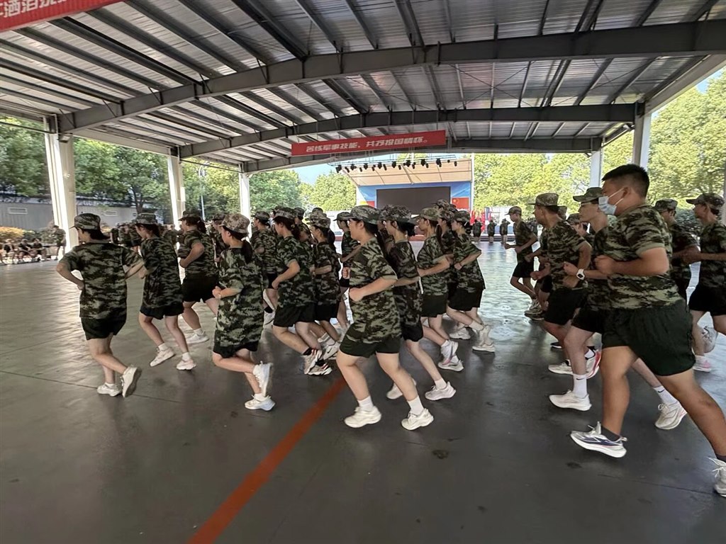 能感觉到身旁同学带起的风,还有彼此靠近的呼吸声。阳光透过遮阳棚的缝隙,在我们身上投下跳跃的光斑,迷彩服被汗水濡湿,却更显精神。有同学跑得上气不接下气,旁边的人就轻轻碰一下他的胳膊,用眼神示意 “跟上,别放弃”。