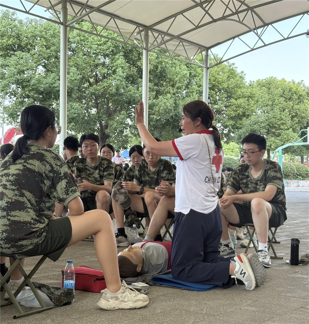 军训第三日,红十字会来到军训基地为学生们进行应急救护培训。在一片坚毅的迷彩绿中,一抹温暖而醒目的“生命红”悄然绽放。他们讲述的不是战术,而是生命的故事;他们传授的不是进攻,而是守护的技能。这不只是一次训练,也是一场关于责任与生命的深刻启蒙,迷彩绿是青春的铠甲,而生命红,则是铠甲之下,最温暖的仁心。