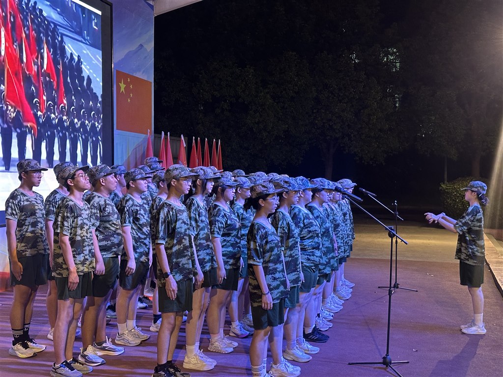 夜色如墨,舞台灯光将我们的迷彩服染上暖红的光晕。站在队列里,身旁是同样挺拔的身影,前方的麦克风静静伫立,似在等待着我们的发声。