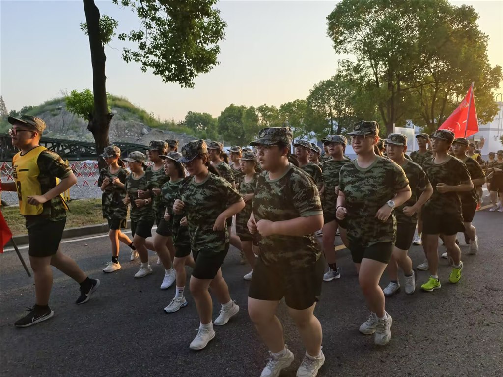 "一、二、三、四!"响亮的口号声划破晨雾,同学们身着迷彩服,队伍整齐如一条流动的河流。虽然睡意还未完全散去,