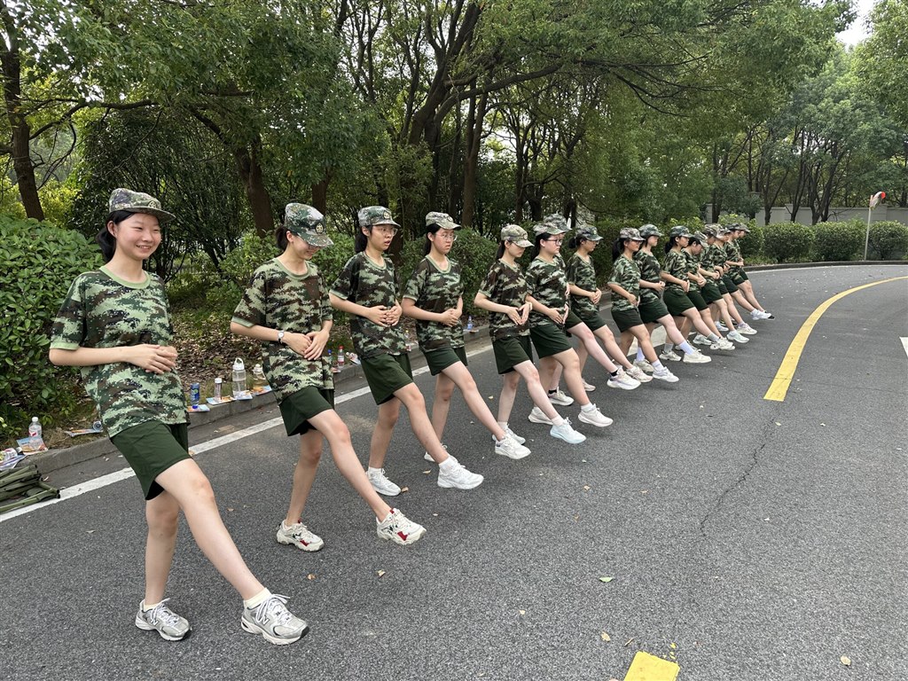 起初,步伐还有些参差,可练着练着,身旁同学的节奏越来越合拍。能感受到彼此动作的呼应,胳膊摆动的幅度、脚步落下的轻重,都在悄然统一。路边放置的水杯,静静见证着我们的专注与努力。