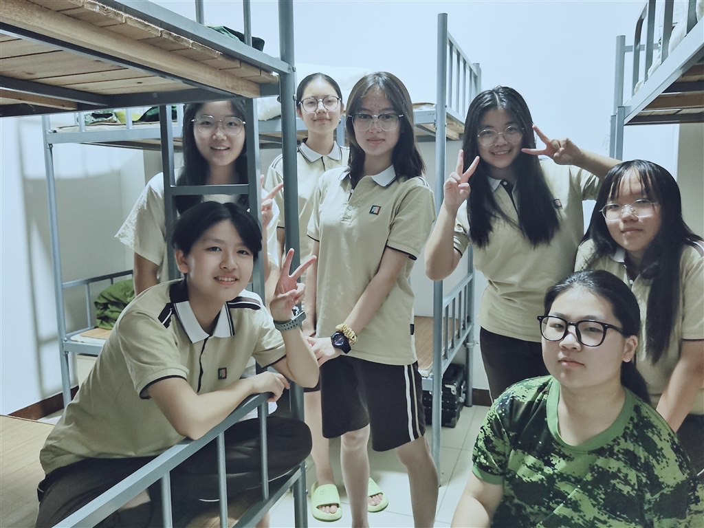 以前我总有些胆小,在人前说话放不开,可今天合唱《强军战歌》时,我鼓足勇气,跟着大家大声唱了出来。当激昂歌声在耳边回荡,我不仅克服了怯懦,更深深体会到:军人的不易,从来不止是体能煎熬,还有日复一日突破自我的坚持。蹲姿训练也格外磨人,膝盖酸痛一波波袭来,每一秒都在考验耐力。但当教官喊出 “起立”,浑身紧绷感瞬间消散,那种酣畅的爽感,还有坚持后涌上心头的喜悦,真实又强烈。