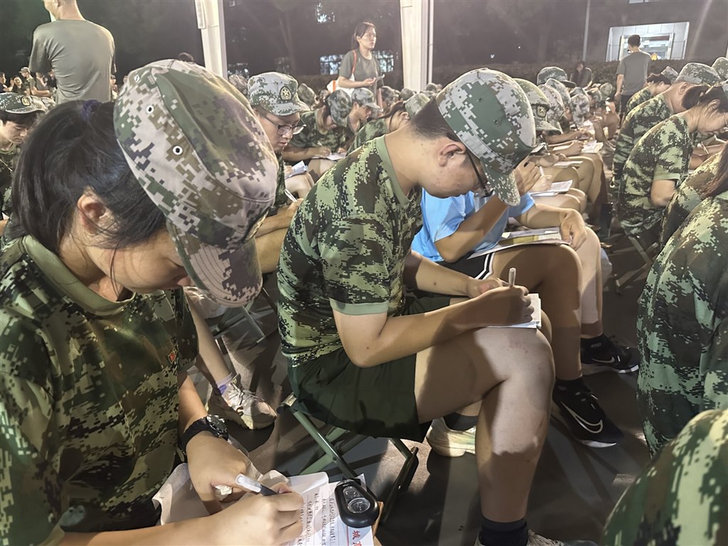 夜幕垂落,训练后的疲惫被灯光柔化。我们穿着迷彩服围坐,笔尖触到信纸的刹那,仿佛要把几日军训的时光,都细细织进给父母的话语里。