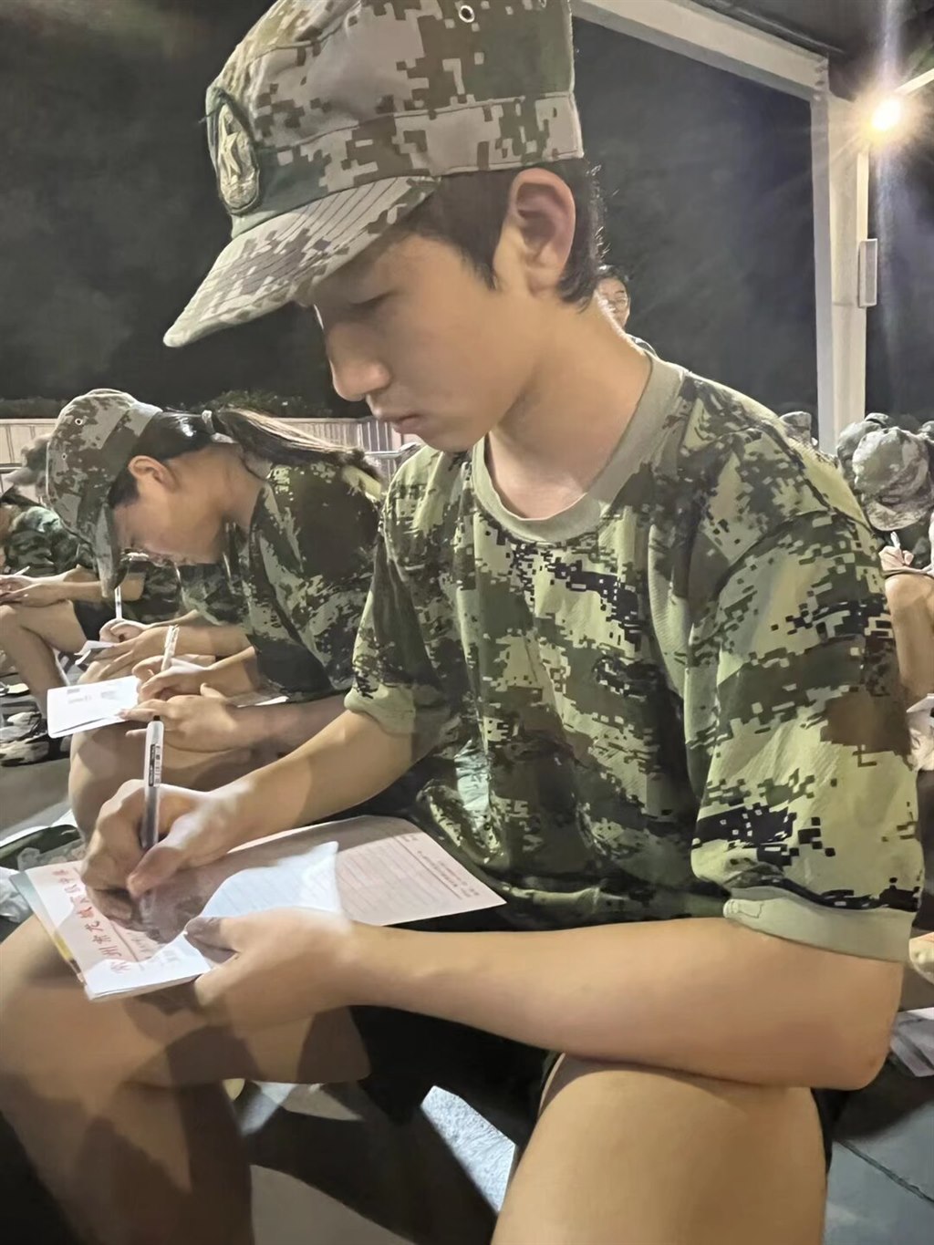 随后,播放了家长们提前录制的暖心寄语。寂静的夜空下,那些鼓励的话语格外清晰:"孩子,你是我们的骄傲""注意身体,爸妈等你回家"。我注意到许多孩子紧紧攥着衣角,泪水在眼眶中打转。