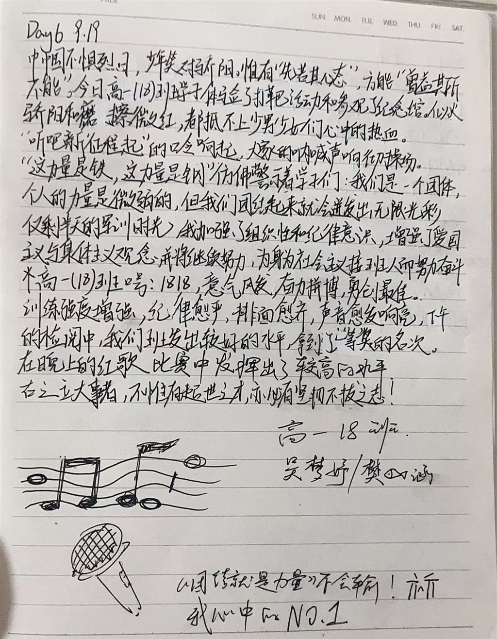 军训的最后两日,同学们的总结感想越发丰富,也更加昂扬。